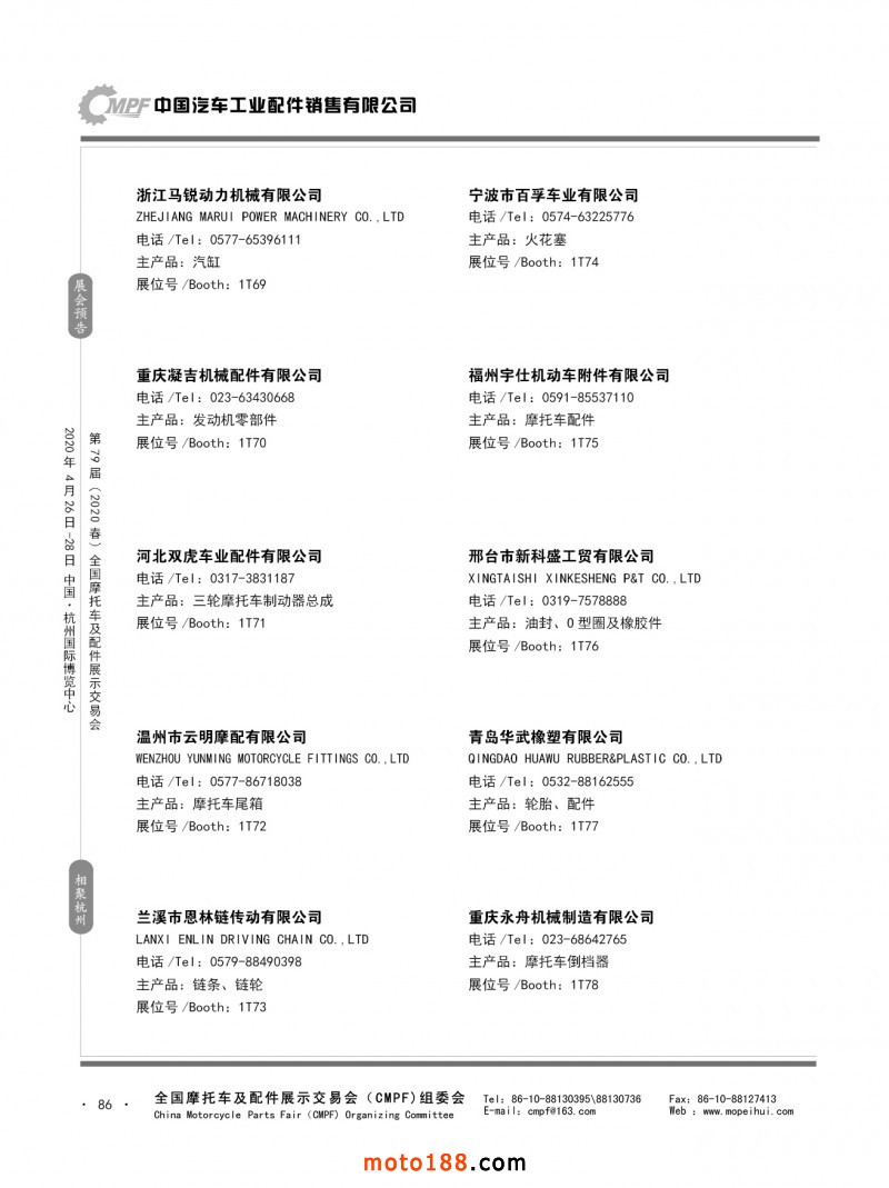 内79-172 第78届(2019秋)全国摩托车及配件展示交易会-广州站参展企业信息
