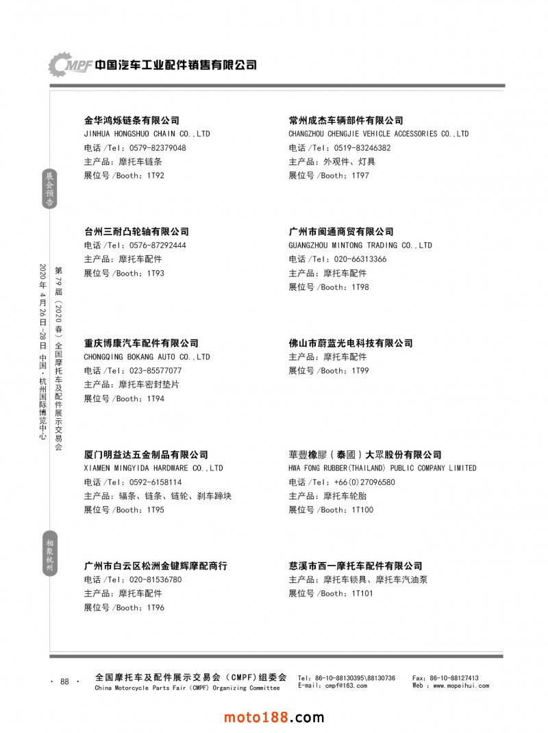 内79-172 第78届(2019秋)全国摩托车及配件展示交易会-广州站参展企业信息