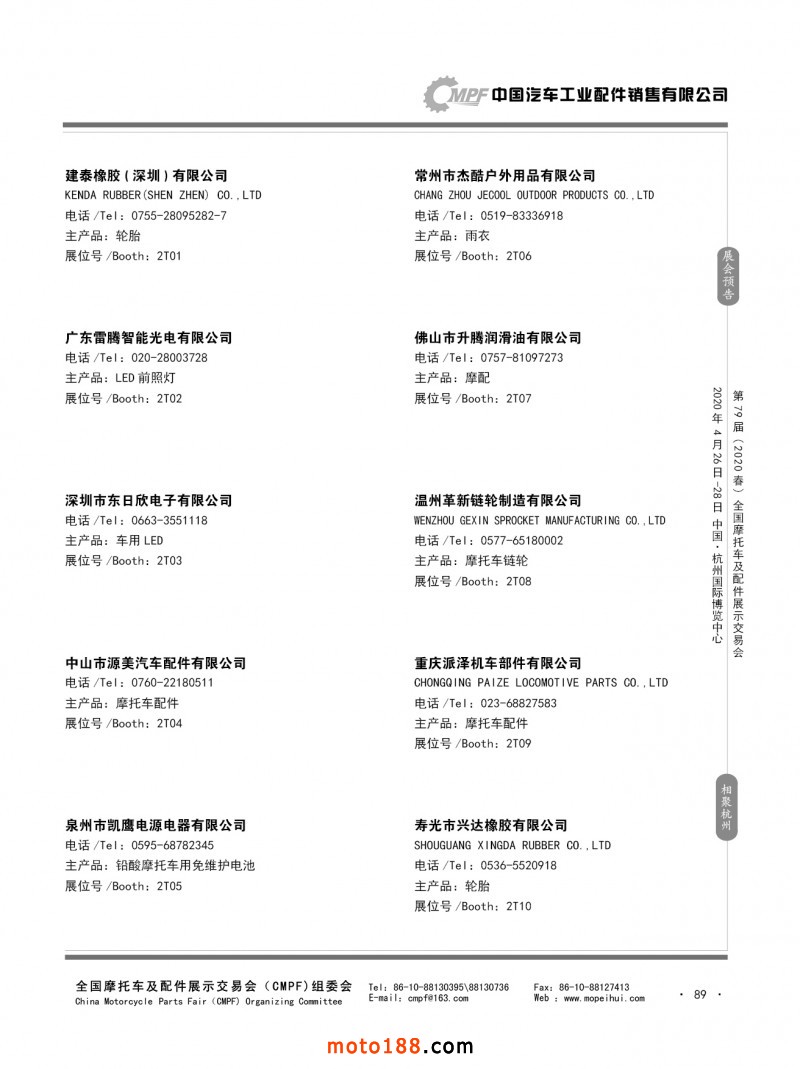 内79-172 第78届(2019秋)全国摩托车及配件展示交易会-广州站参展企业信息