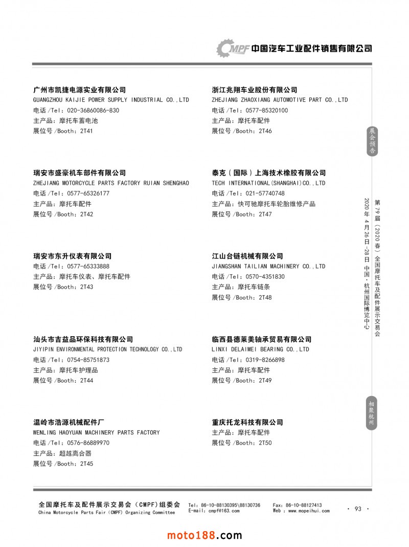 内79-172 第78届(2019秋)全国摩托车及配件展示交易会-广州站参展企业信息