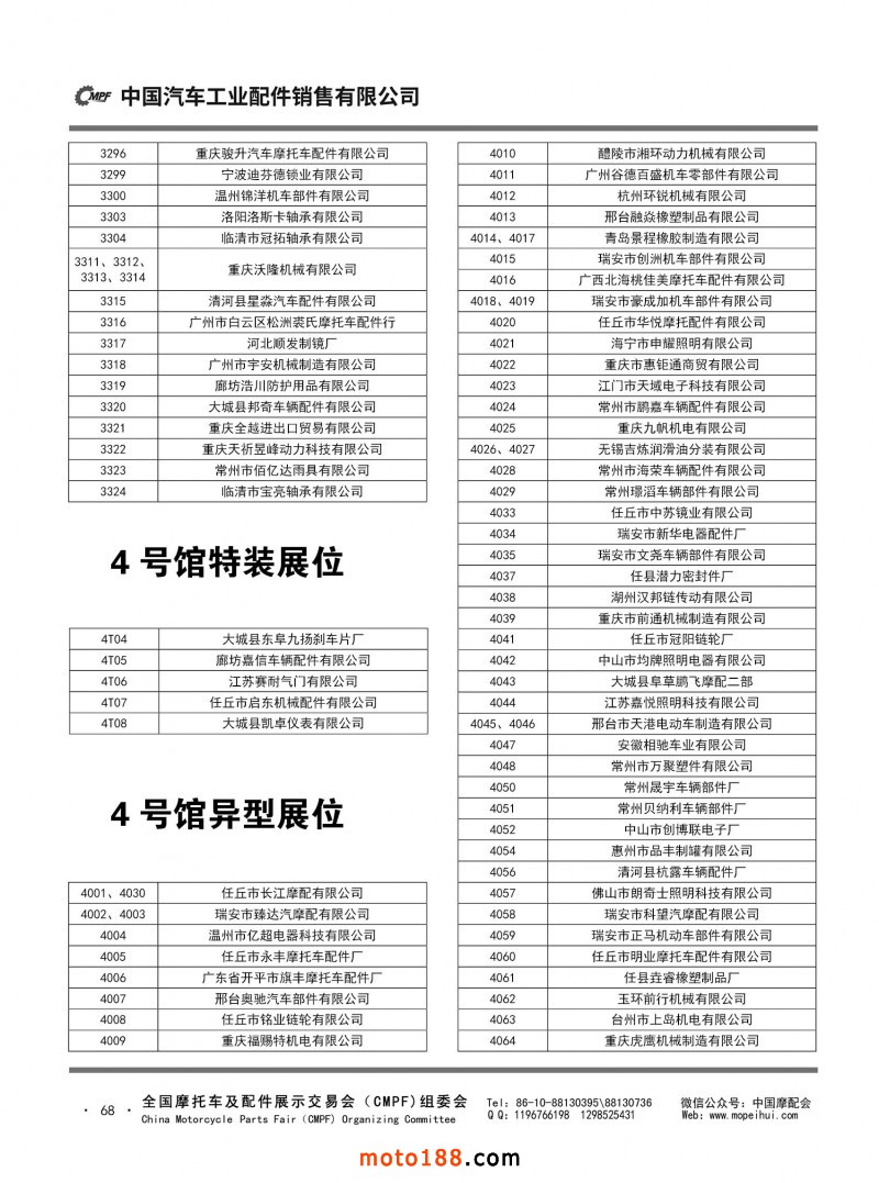 内68 第82届(2021秋)全国摩托车及配件展示交易会-广州站参展单位名录