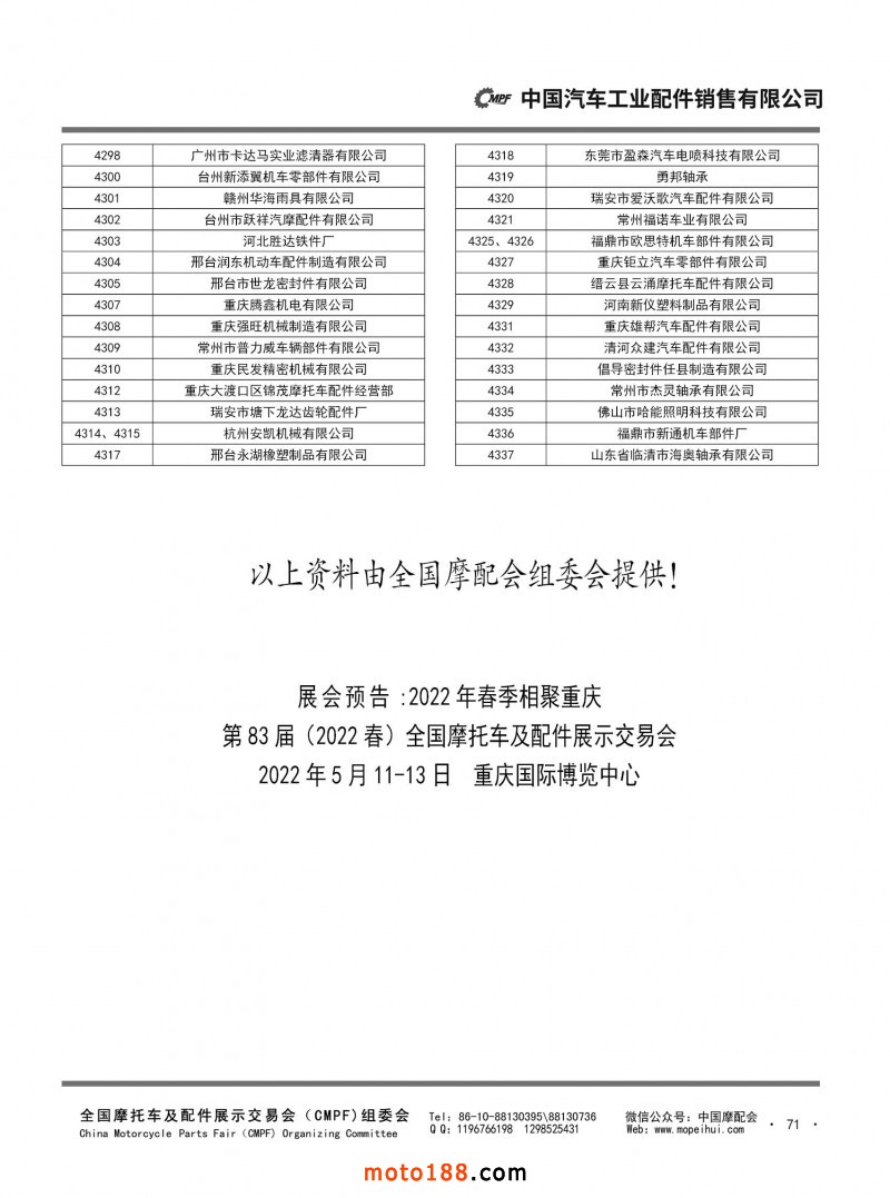 内71 第82届(2021秋)全国摩托车及配件展示交易会-广州站参展单位名录