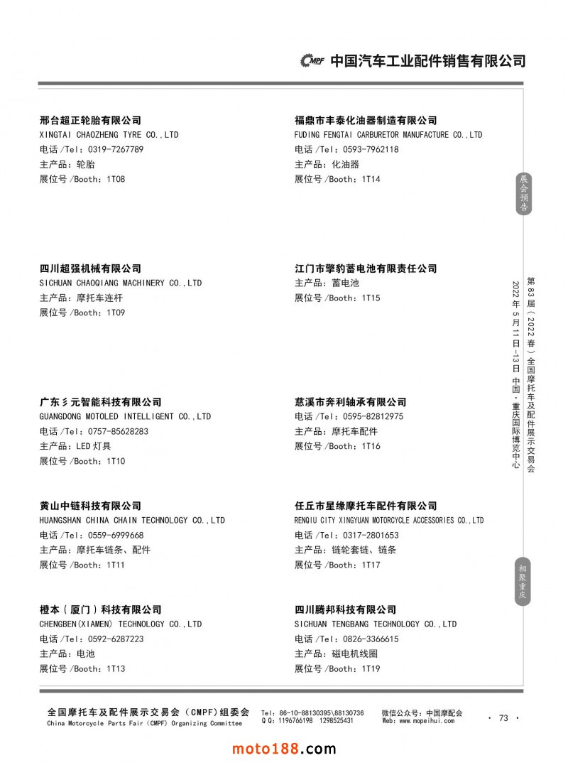 内73 第82届(2021秋)全国摩托车及配件展示交易会-广州站参展企业信息