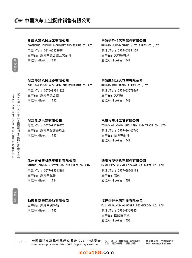 内76 第82届(2021秋)全国摩托车及配件展示交易会-广州站参展企业信息