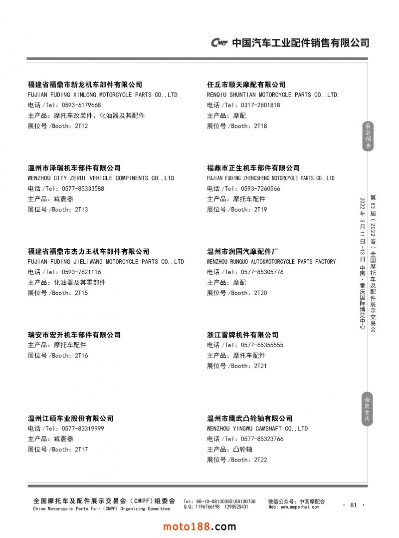 内81 第82届(2021秋)全国摩托车及配件展示交易会-广州站参展企业信息