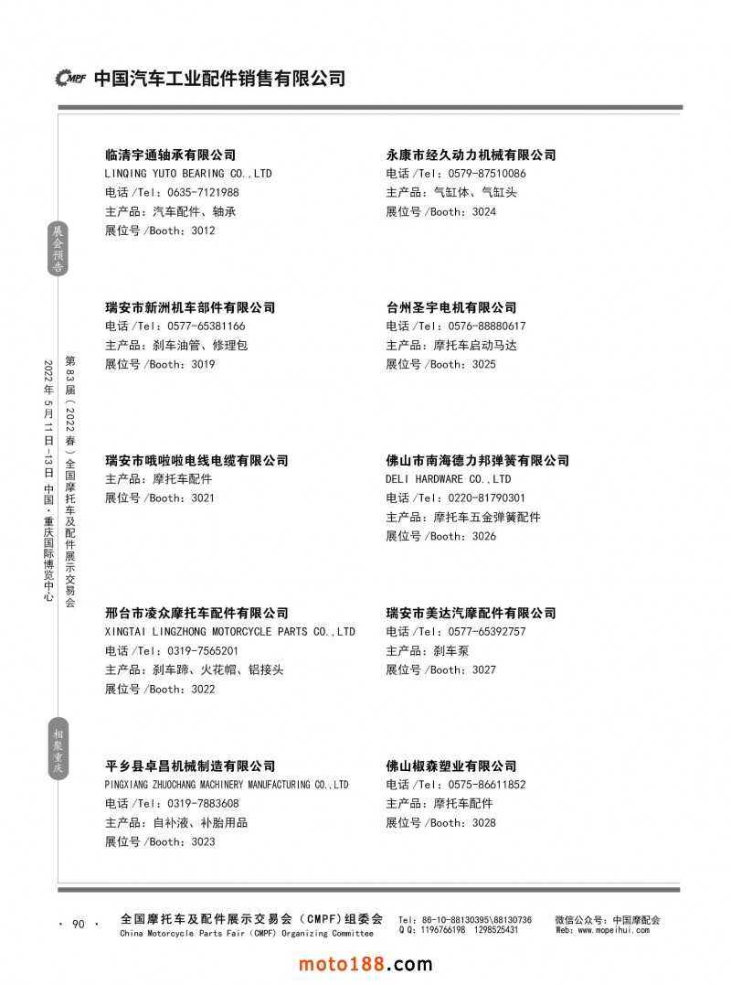内90 第82届(2021秋)全国摩托车及配件展示交易会-广州站参展企业信息
