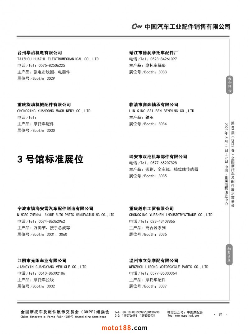 内91 第82届(2021秋)全国摩托车及配件展示交易会-广州站参展企业信息