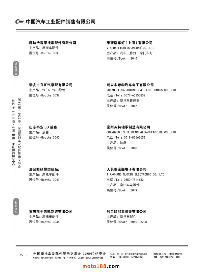 内92 第82届(2021秋)全国摩托车及配件展示交易会-广州站参展企业信息