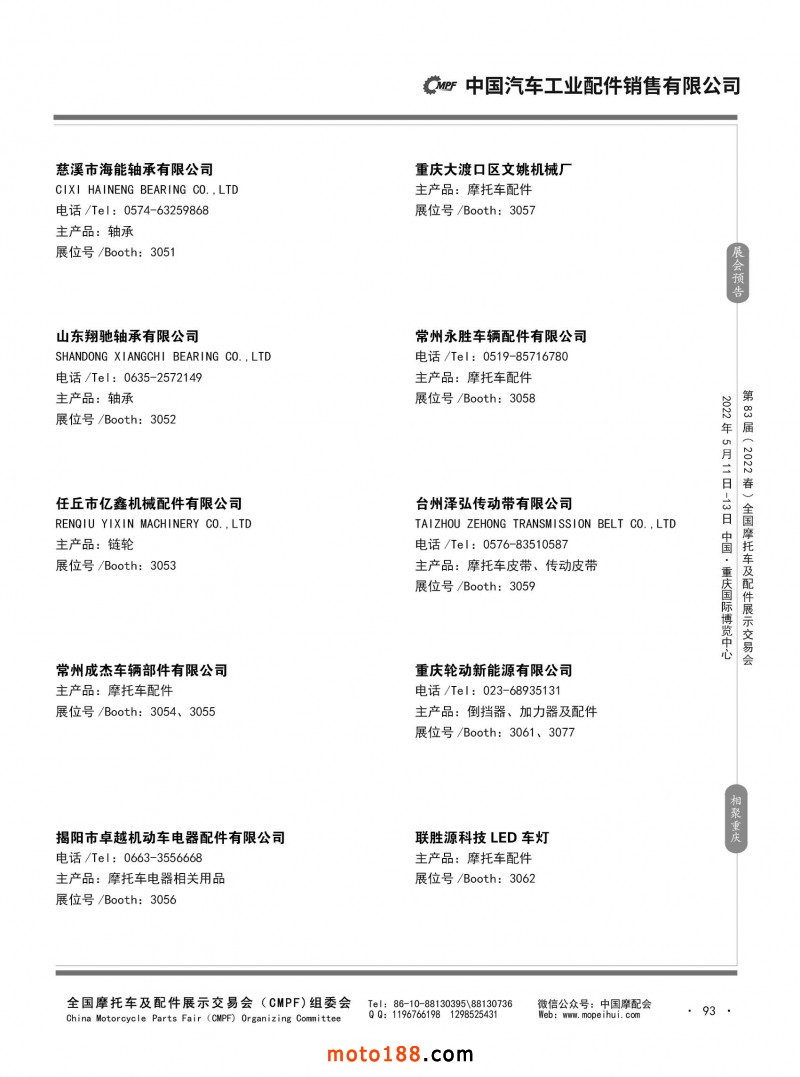 内93 第82届(2021秋)全国摩托车及配件展示交易会-广州站参展企业信息