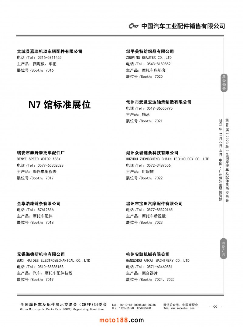 内80-176 第85届(2023春)全国摩托车及配件展示交易会-重庆站参展企业信息