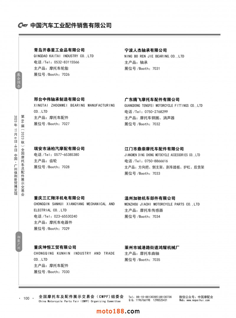 内80-176 第85届(2023春)全国摩托车及配件展示交易会-重庆站参展企业信息