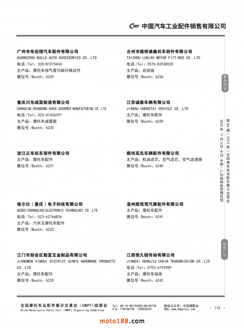 内80-176 第85届(2023春)全国摩托车及配件展示交易会-重庆站参展企业信息
