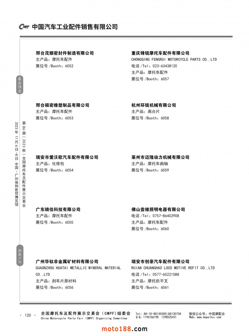内80-176 第85届(2023春)全国摩托车及配件展示交易会-重庆站参展企业信息