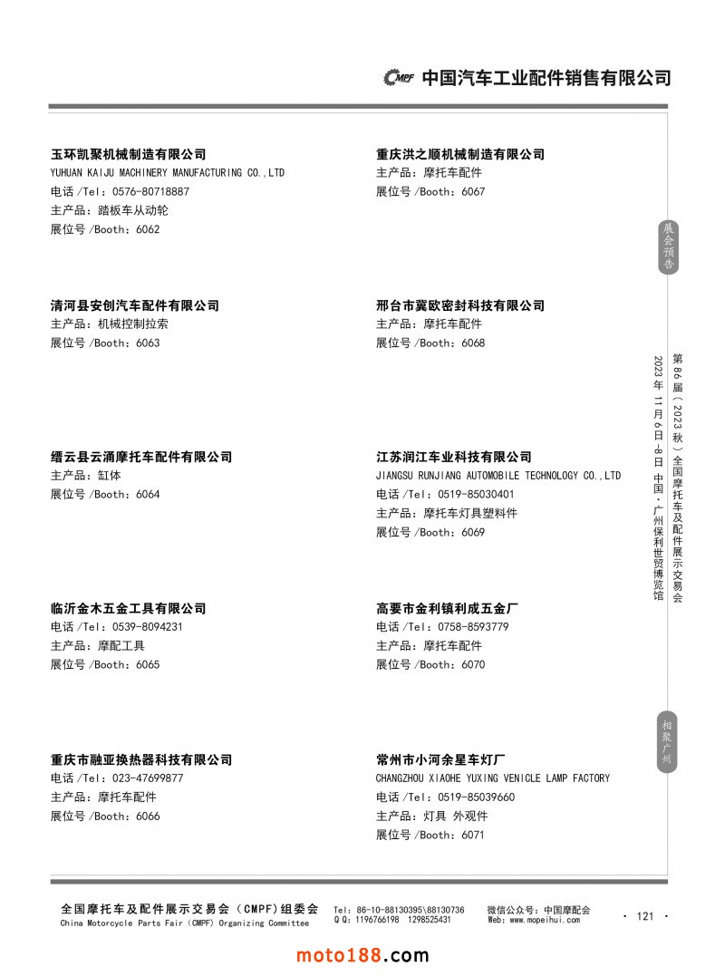 内80-176 第85届(2023春)全国摩托车及配件展示交易会-重庆站参展企业信息