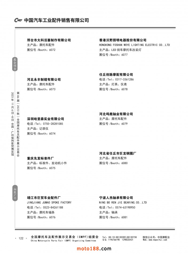 内80-176 第85届(2023春)全国摩托车及配件展示交易会-重庆站参展企业信息