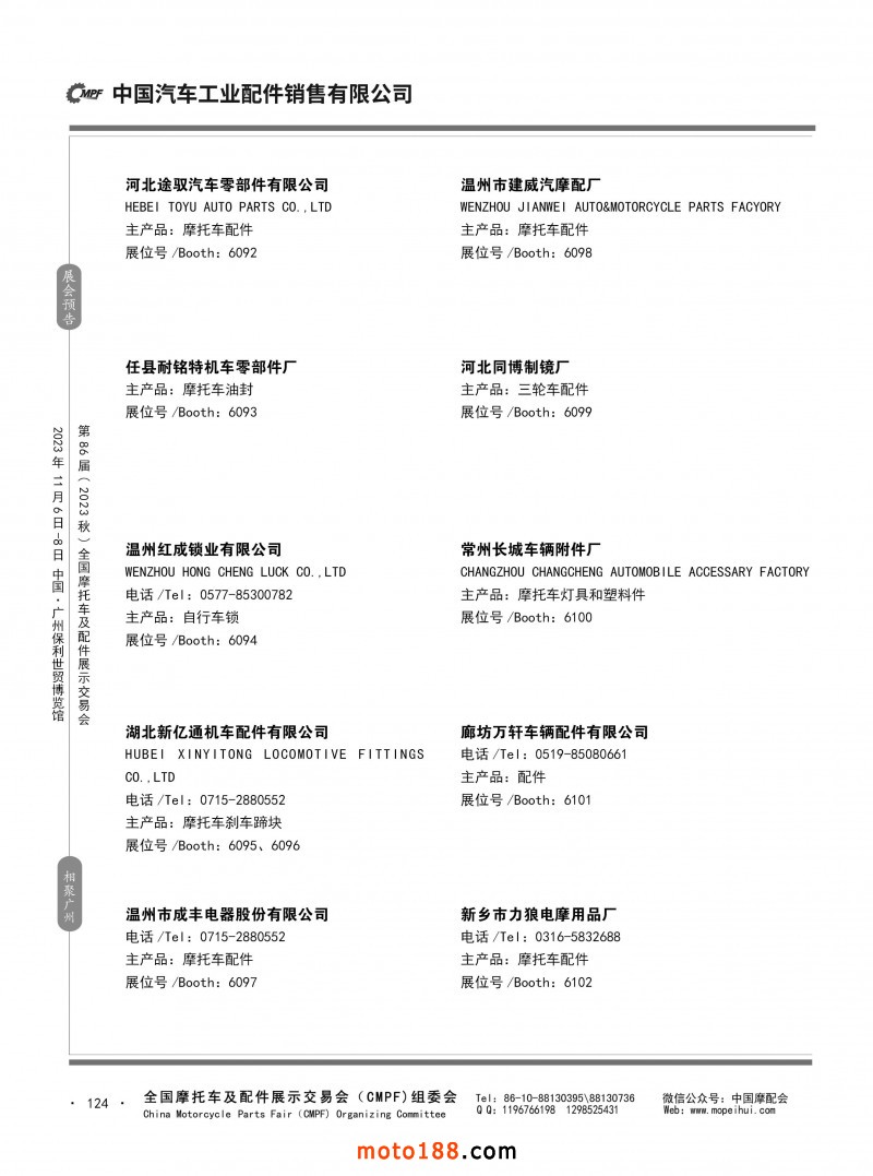 内80-176 第85届(2023春)全国摩托车及配件展示交易会-重庆站参展企业信息