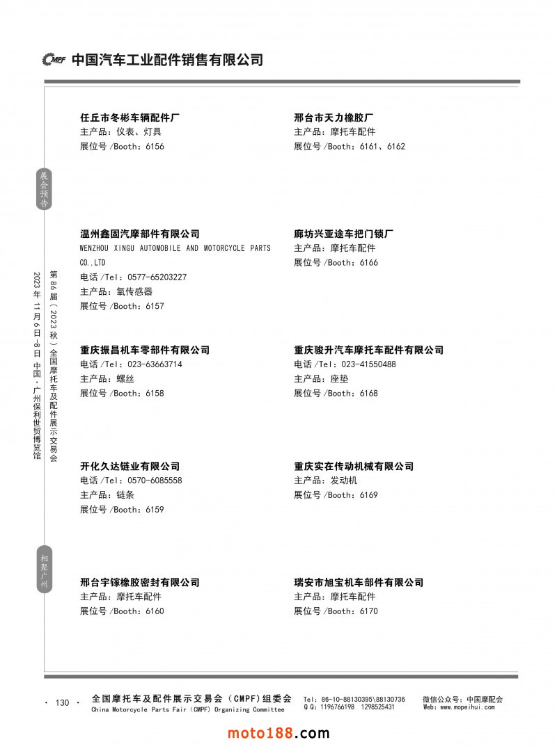 内80-176 第85届(2023春)全国摩托车及配件展示交易会-重庆站参展企业信息
