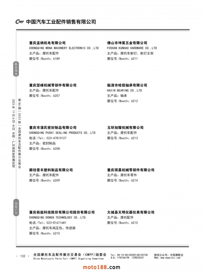 内80-176 第85届(2023春)全国摩托车及配件展示交易会-重庆站参展企业信息