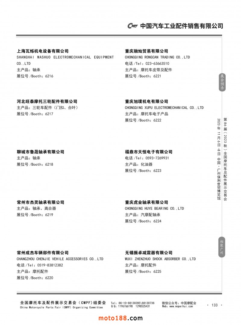 内80-176 第85届(2023春)全国摩托车及配件展示交易会-重庆站参展企业信息