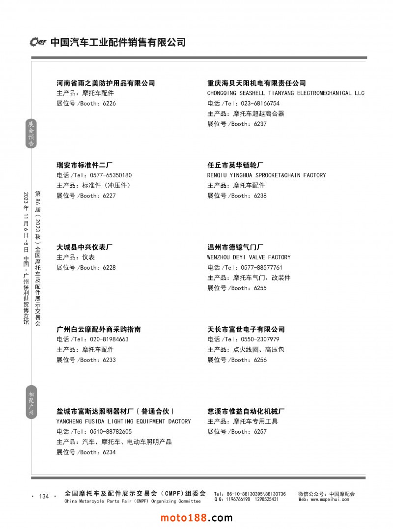 内80-176 第85届(2023春)全国摩托车及配件展示交易会-重庆站参展企业信息
