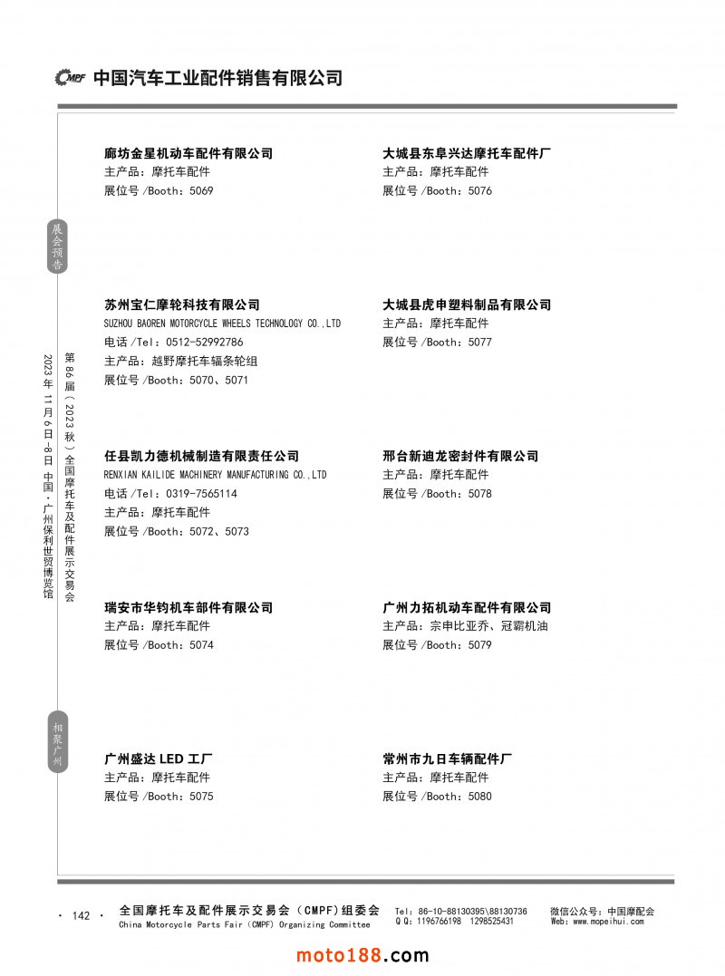 内80-176 第85届(2023春)全国摩托车及配件展示交易会-重庆站参展企业信息