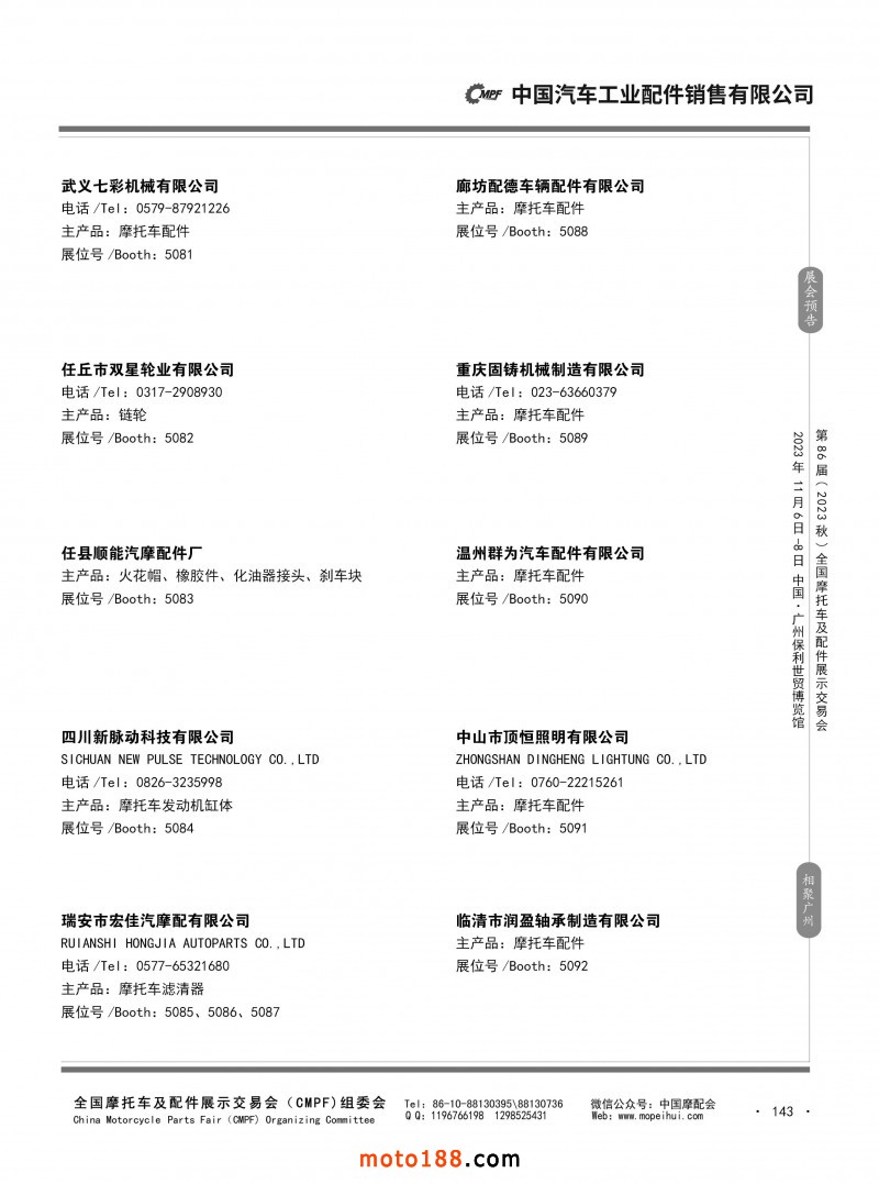 内80-176 第85届(2023春)全国摩托车及配件展示交易会-重庆站参展企业信息