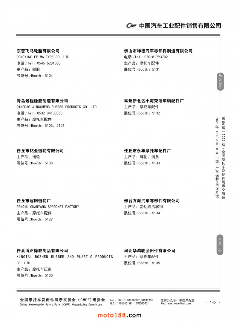 内80-176 第85届(2023春)全国摩托车及配件展示交易会-重庆站参展企业信息