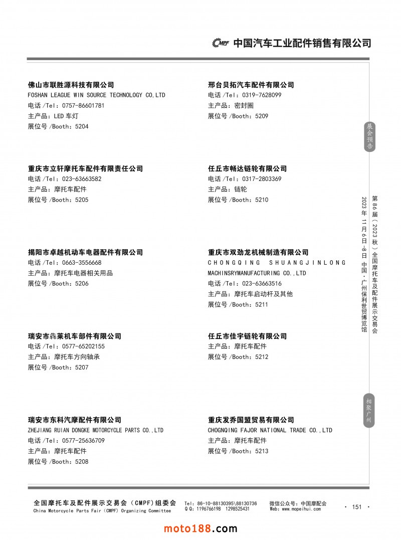 内80-176 第85届(2023春)全国摩托车及配件展示交易会-重庆站参展企业信息