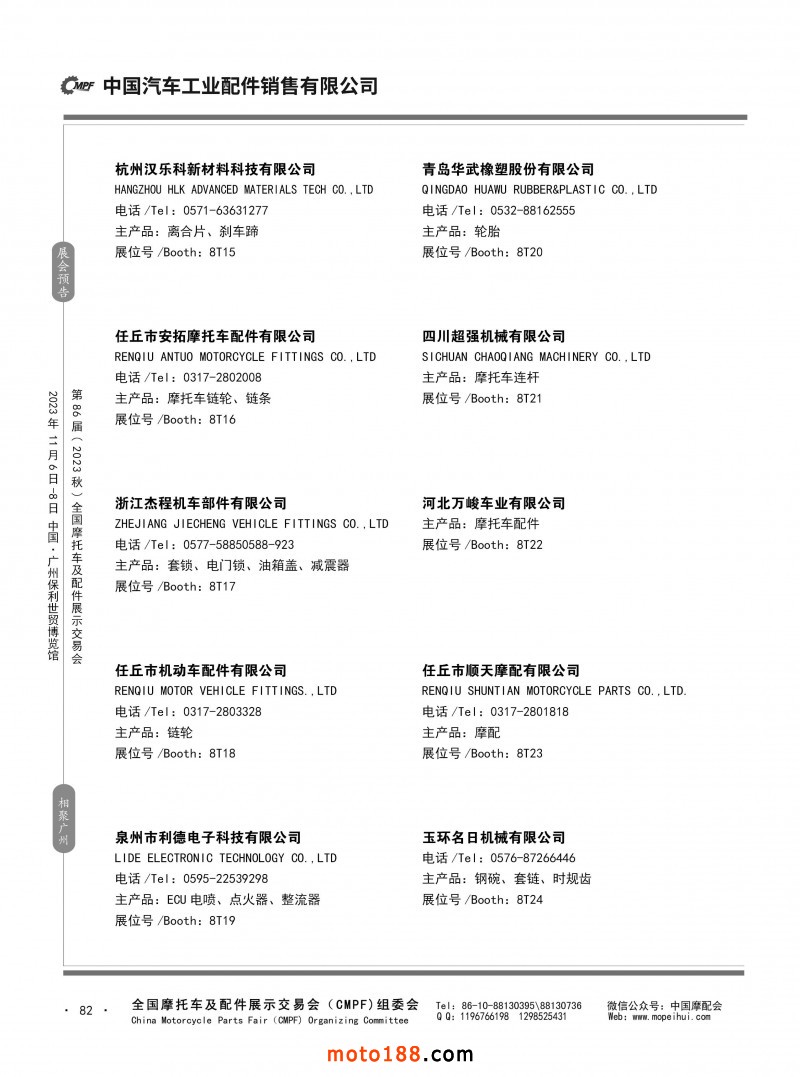 内80-176 第85届(2023春)全国摩托车及配件展示交易会-重庆站参展企业信息