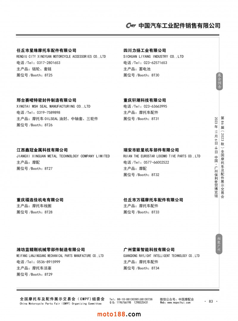 内80-176 第85届(2023春)全国摩托车及配件展示交易会-重庆站参展企业信息