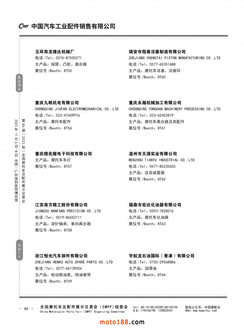 内80-176 第85届(2023春)全国摩托车及配件展示交易会-重庆站参展企业信息
