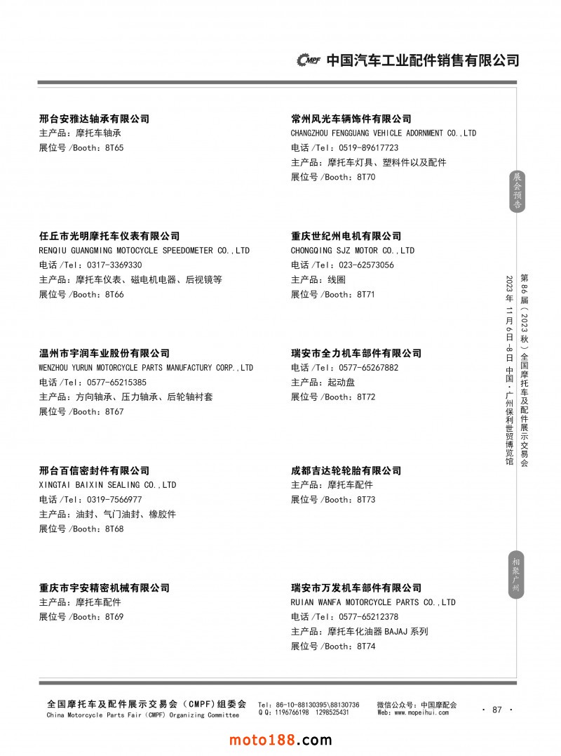 内80-176 第85届(2023春)全国摩托车及配件展示交易会-重庆站参展企业信息