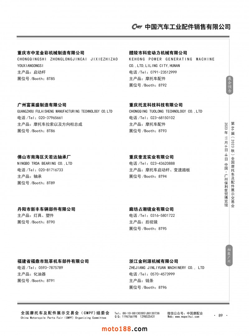 内80-176 第85届(2023春)全国摩托车及配件展示交易会-重庆站参展企业信息