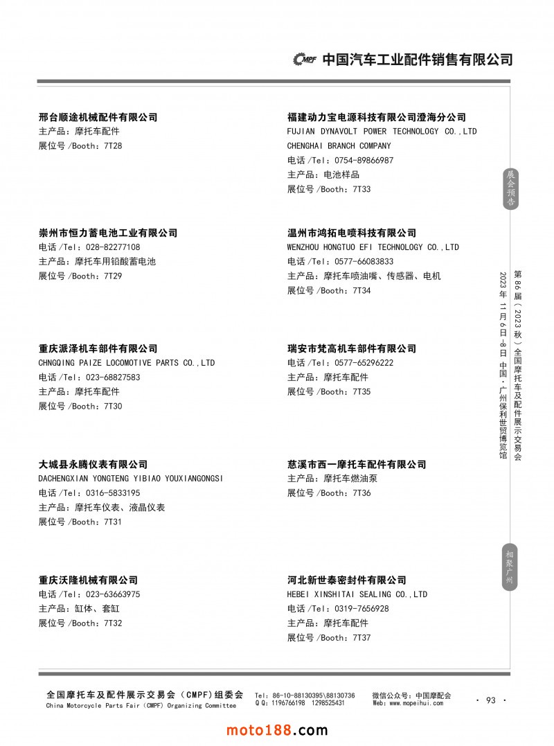 内80-176 第85届(2023春)全国摩托车及配件展示交易会-重庆站参展企业信息