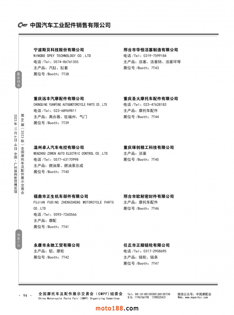 内80-176 第85届(2023春)全国摩托车及配件展示交易会-重庆站参展企业信息