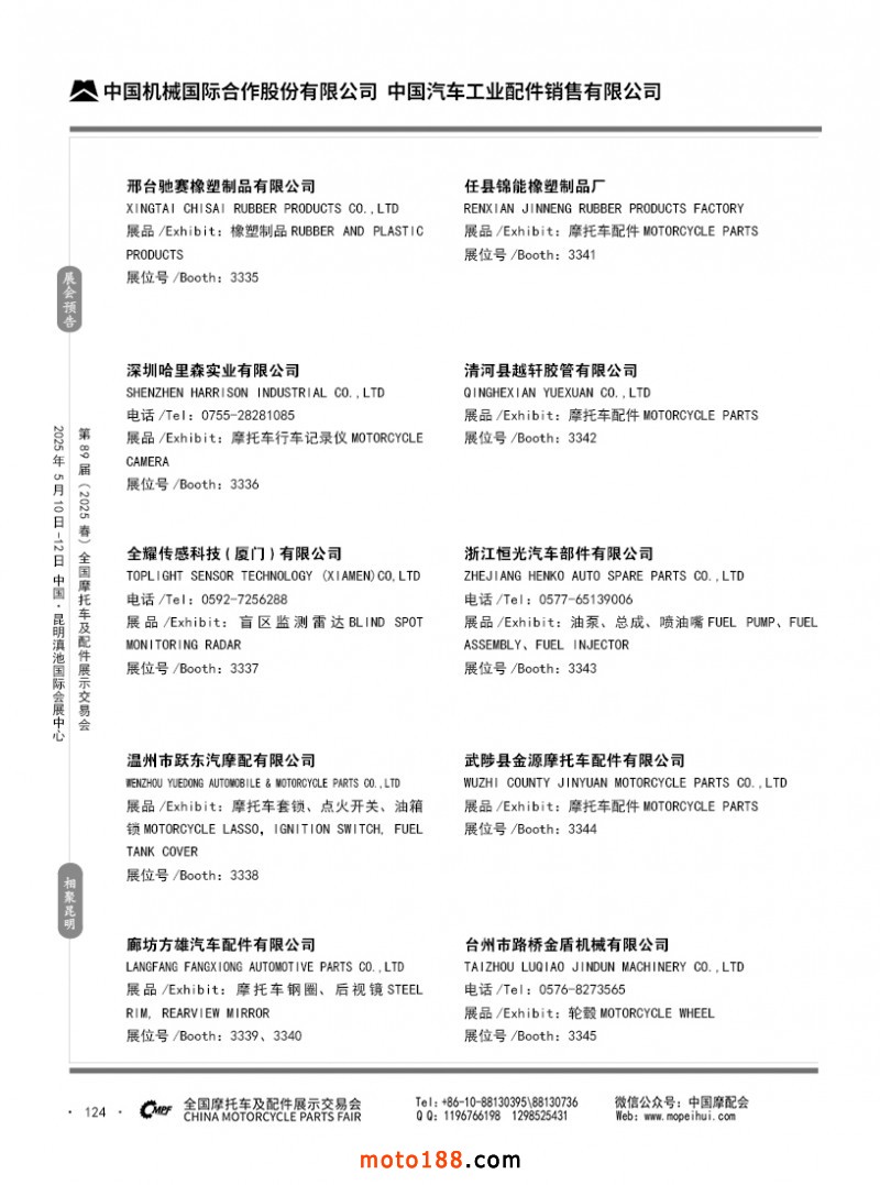 内69-188 第88届(2024秋)全国摩托车及配件展示交易会-广州站参展企业信息