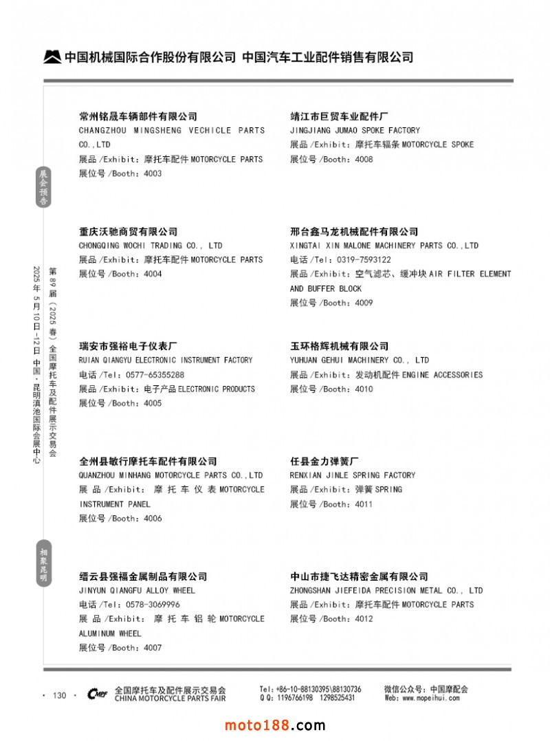 内69-188 第88届(2024秋)全国摩托车及配件展示交易会-广州站参展企业信息