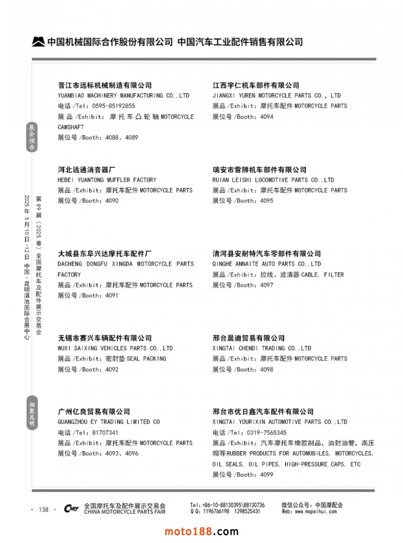 内69-188 第88届(2024秋)全国摩托车及配件展示交易会-广州站参展企业信息