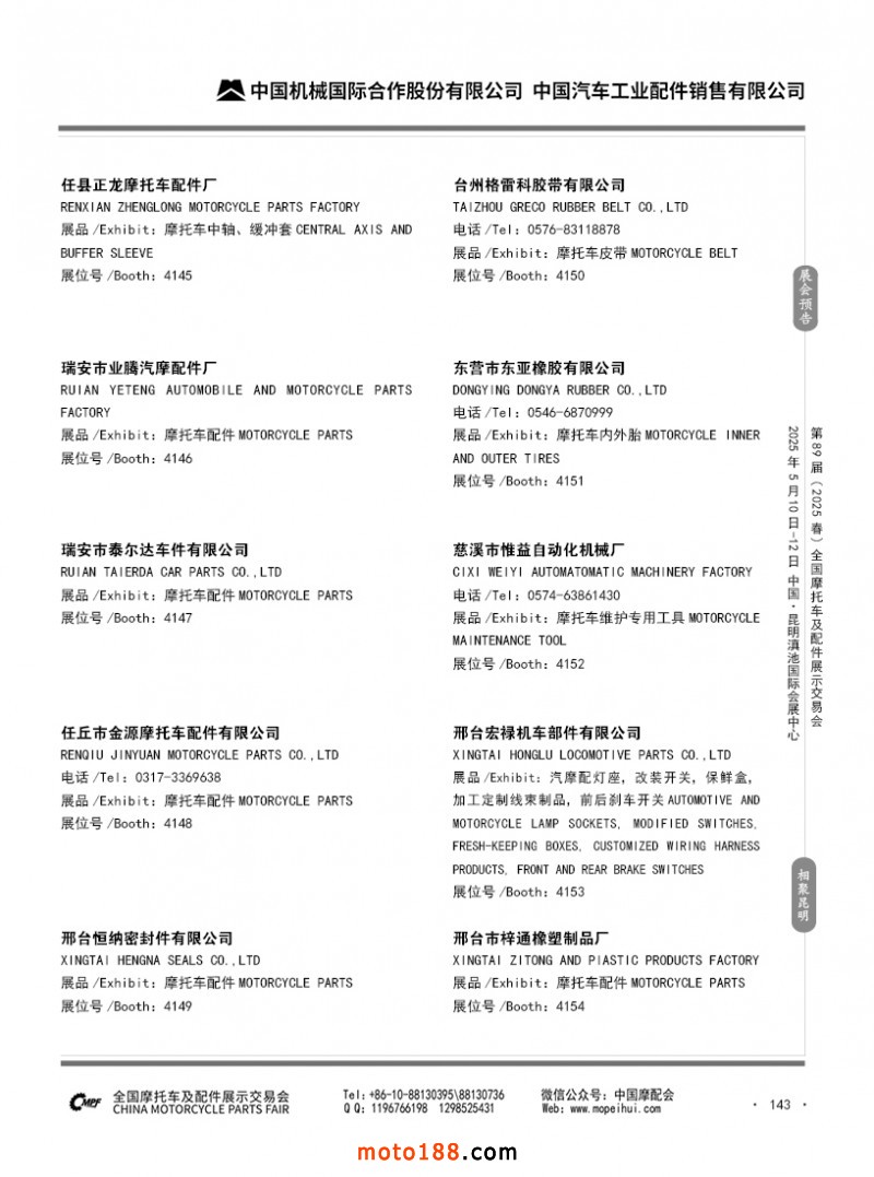 内69-188 第88届(2024秋)全国摩托车及配件展示交易会-广州站参展企业信息