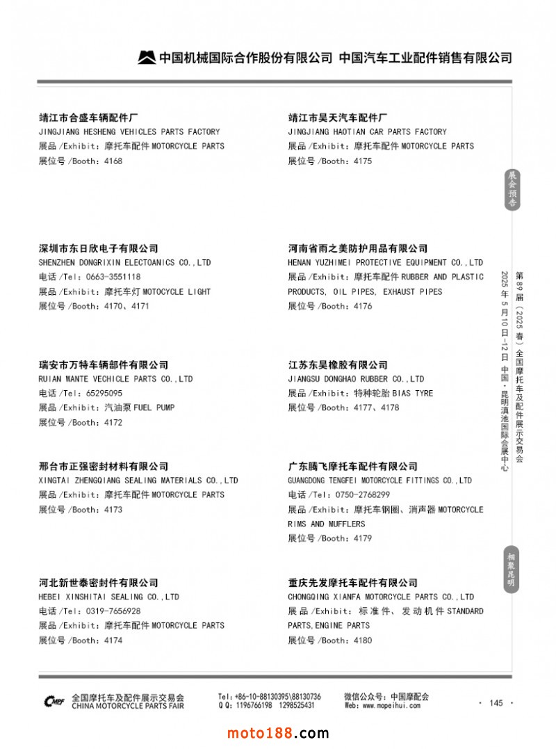 内69-188 第88届(2024秋)全国摩托车及配件展示交易会-广州站参展企业信息