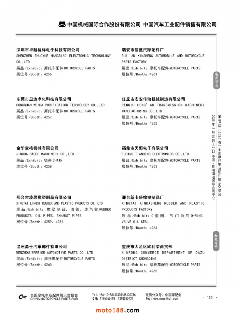 内69-188 第88届(2024秋)全国摩托车及配件展示交易会-广州站参展企业信息