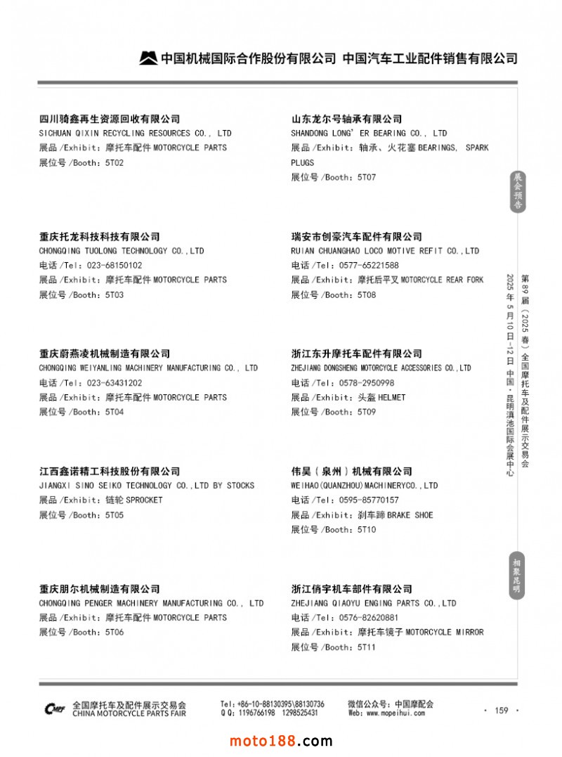 内69-188 第88届(2024秋)全国摩托车及配件展示交易会-广州站参展企业信息