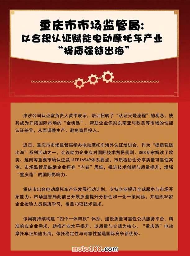 内13 重庆市市场监管局以合规认证赋能电动摩托车产业提质强链出海