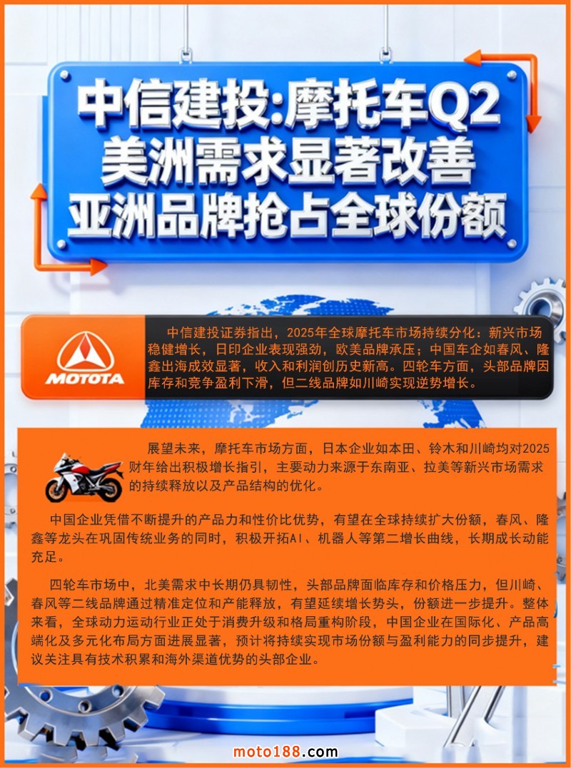 内19 中信建投:摩托车Q2美洲需求显著改善亚洲品牌抢占全球份额