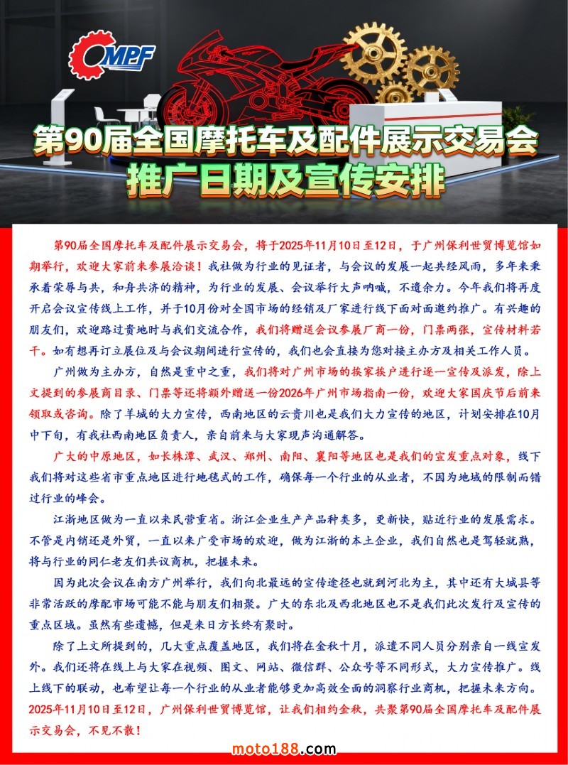 内2 第90届全国摩托车及配件展示交易会 推广日期及宣传安排