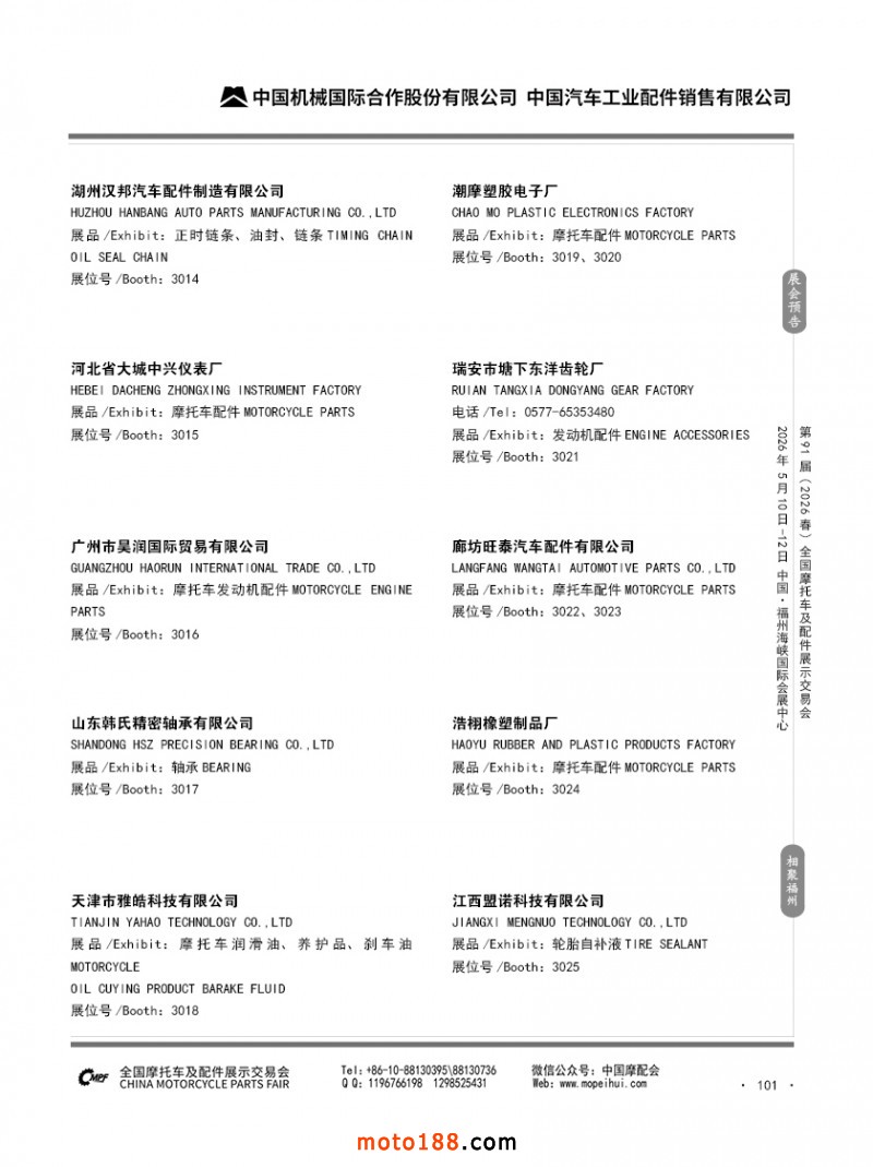 内101 第90届(2025秋)全国摩托车及配件展示交易会-广州站参展企业信息