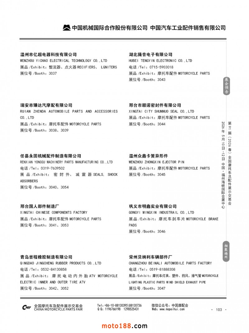 内103 第90届(2025秋)全国摩托车及配件展示交易会-广州站参展企业信息