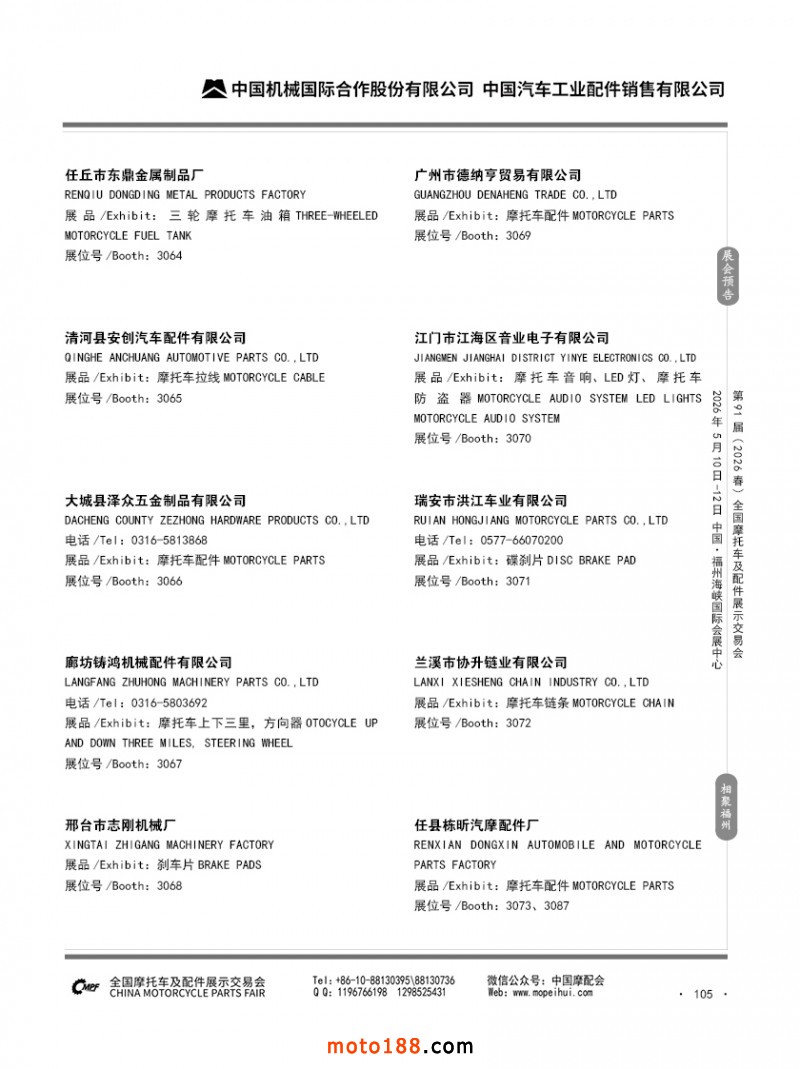 内105 第90届(2025秋)全国摩托车及配件展示交易会-广州站参展企业信息