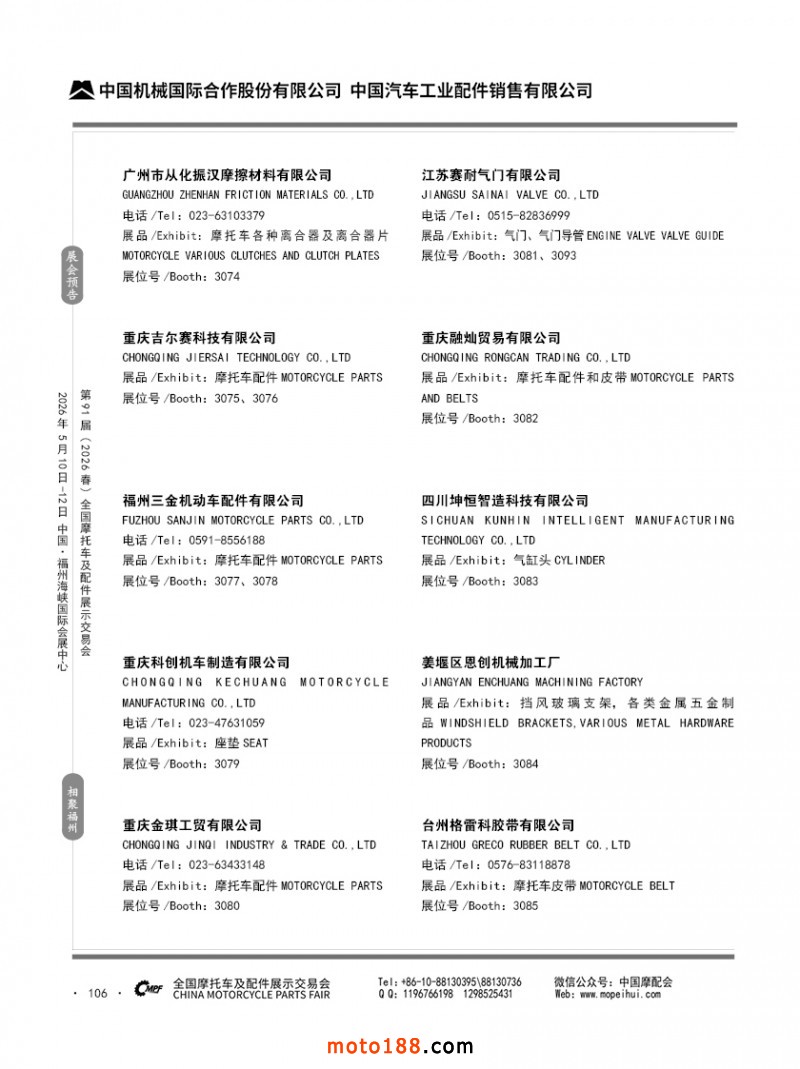 内106 第90届(2025秋)全国摩托车及配件展示交易会-广州站参展企业信息