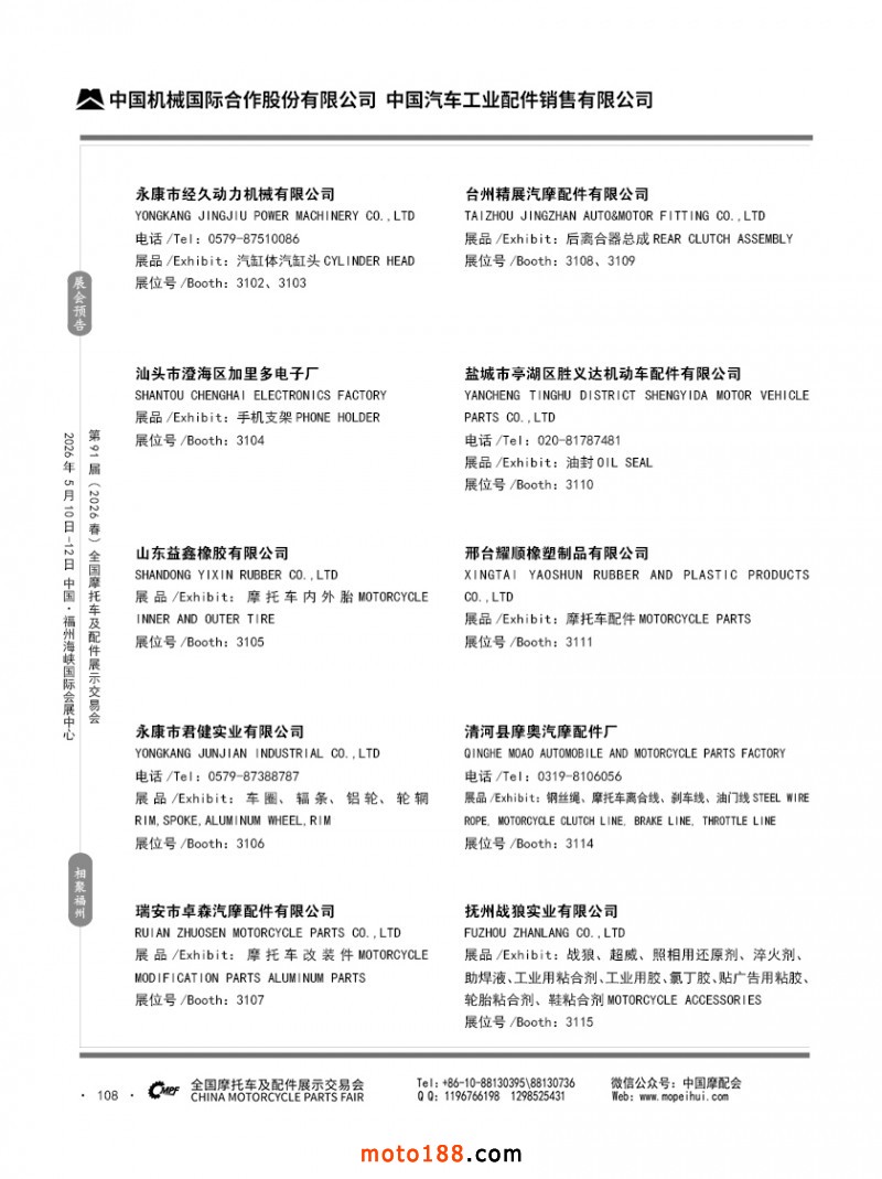 内108 第90届(2025秋)全国摩托车及配件展示交易会-广州站参展企业信息